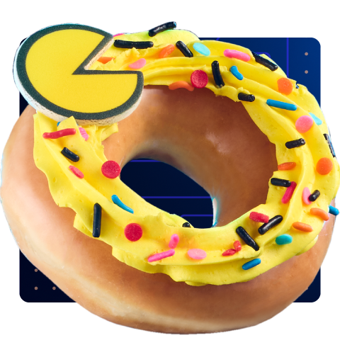 There are three Pac-Man doughnuts available during as part of this Krispy Kreme promotion, and they can be purchased alone or in a box of 12 when ordered from the official site. The Pac-Man Party one features an original glazed doughnut with a sugar decoration of the character and matching yellow buttercream icing. The Strawberry Power Berry option features a strawberry design on top of an original glazed with strawberry filling. Finally, the Team Ghost design looks like an actual maze from the game with Blinky, Pinky, Inky, and Clyde icing on an original glazed with chocolate filling inside. These are $2.69 each, which is $0.40 more than a standard version. A dozen, which includes three Pac-Man Party, three Team Ghost, two Strawberry Power Berry, and four regular original glazed, costs $19.99.