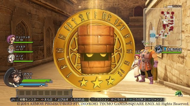 Whenever you defeat a monster there is a chance you’ll get a Monster Coin. Monster coins can be used to summon monsters that fight with you. Players can have up to two computer controlled monster allies. Famitsu shared more screenshots of the Monster Coin system.