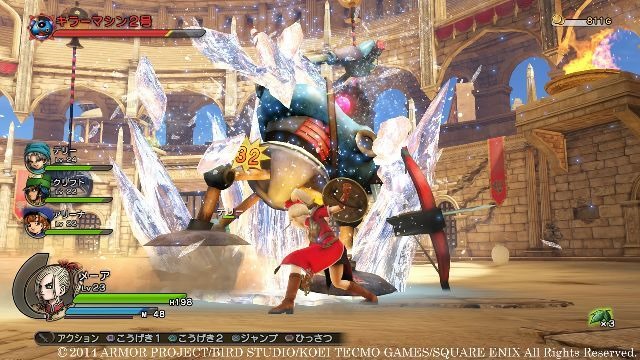 Dragon Quest Heroes introduces two new main characters, Act and Mar. Both fighters are armed with a one handed sword & shield and use Giga Slash as a deathblow.