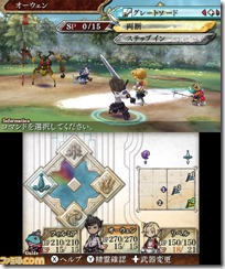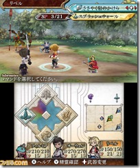 The Spirit Artes’ balance of power can be seen on the bottom screen, out of Water (blue), Wind (green), Fire (red), and Dark (purple). The ratio for the above attributes can vary, and enemies will also use Spirit Artes, so you can use this to find the best way to fight them off.