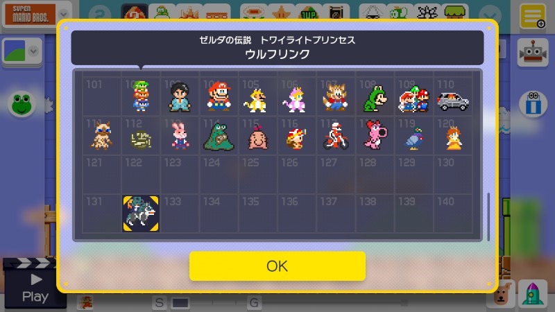 When a Wolf Link amiibo is scanned into Super Mario Maker now, a costume tied to it will appear as the 132nd costume in-game. As an unexpected quirk, the text for the costume is currently in Japanese. (It reads, “The Legend of Zelda: Twilight Princess. Wolf Link.) Pressing up while in the Wolf Link costume will trigger a pose where Midna points with her hair, and it has wolf barking sound effects. Dying or reaching the end of the level in the costume causes sound clips from The Legend of Zelda: Twilight Princess to play.