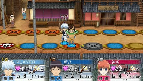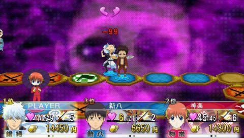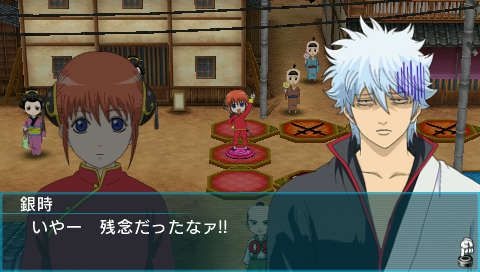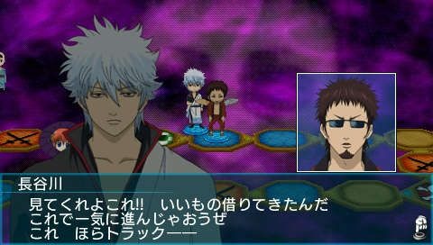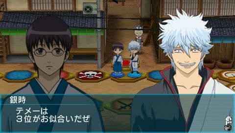Namco Bandai is making a Gin Tama board game for PSP. In Gin Tama’s Sugokroku, players roll dice and take turns moving across a board while avoiding Madao.