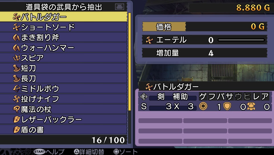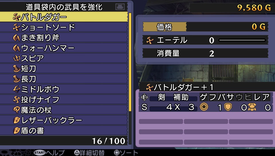 Promesse stays in the cellar. She can revive fallen characters and extract ether from weapons. Ether can be used to strengthen weapons and armor.
