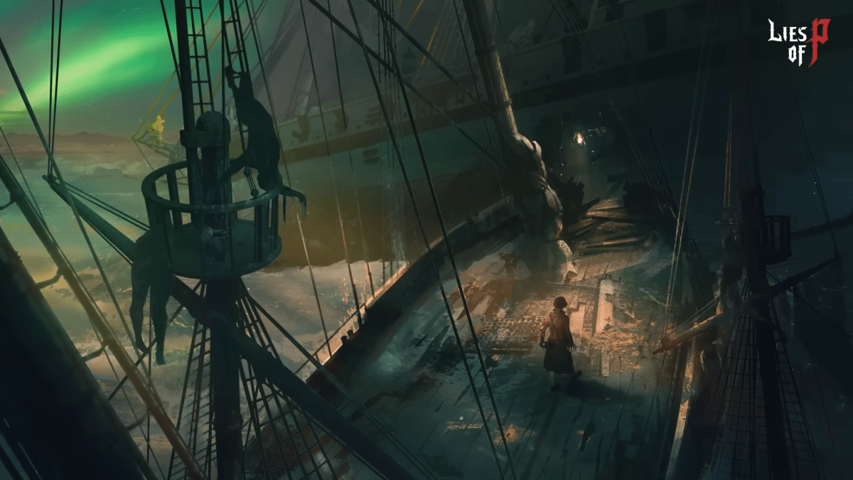 In the video, Choi stated that the development team’s main priorities are working on both the Lies of P DLC and sequel. Though no concrete details were revealed, Choi did show two pieces of teaser art for the DLC towards the end of the video. One of the two features what appears to be a large water turbine, while the other shows Pinocchio exploring two crashed sailing ships.