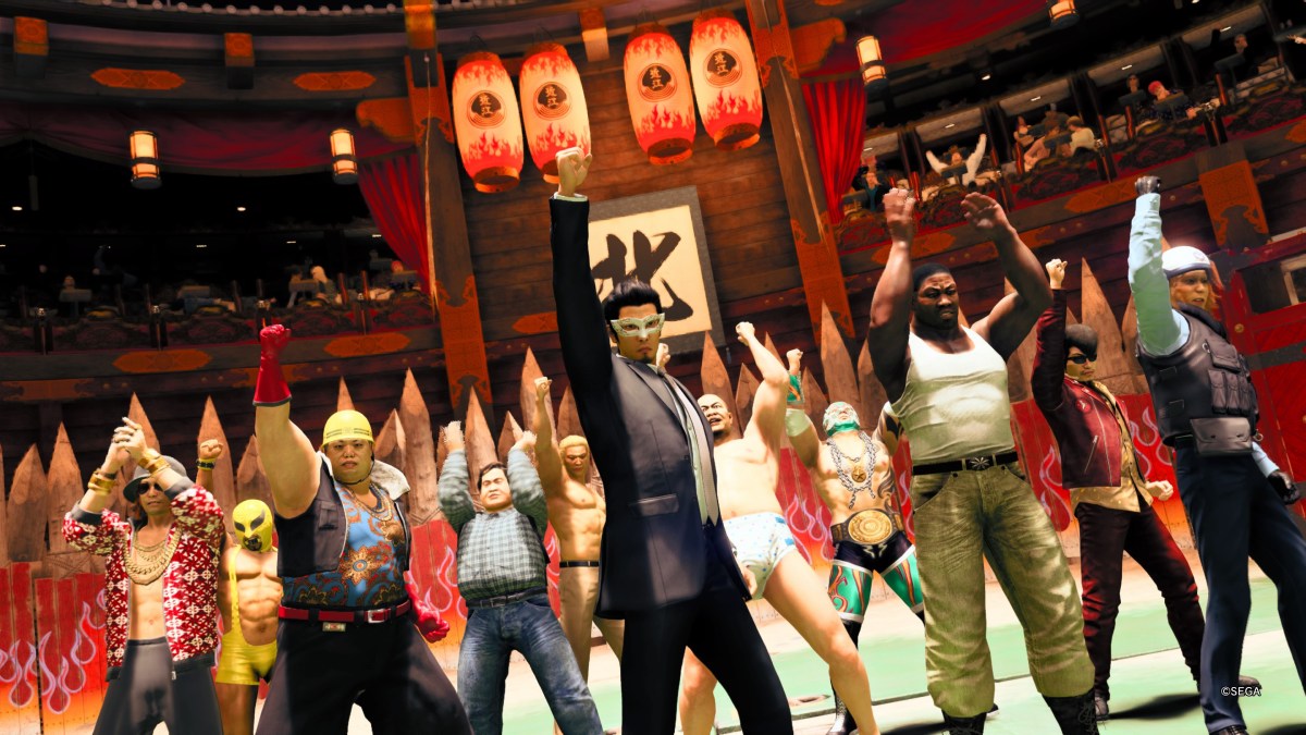 The one area that feels genuinely new is The Castle, a container ship converted into a gambling and fighting destination. It’s very bright and flashy, and it focuses on adding to Gaiden’s activities rather than building out a believable environment. It’s here that the game pads its hour count the most with gladiatorial combat. There’s single-player fights, which are… fine? But the main attraction here is “Hell Team Rumble.” You collect team members through doing the rest of the game, and can fight with up to ten of them at once in some challenges. As usual, there’s a minigame that lets you easily grind for cash or upgrade currency, and Hell Team Rumble is the one in this game for sure.