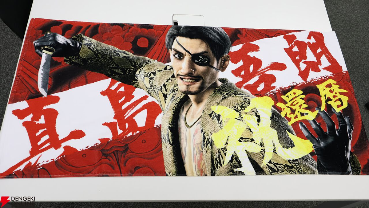 Other merchandise from the Yakuza series will also be available, including face cushions of characters such as Kazuma Kiryu, Ichiban Kasuga, and Majima himself, as well as a large embossed pouch featuring Majima’s signature eye patch and Hannya tattoo design. Prices for these items range from 900 yen (approximately $6 USD) for acrylic key holders to 4,800 yen (approx. $32 USD) for the big towel.