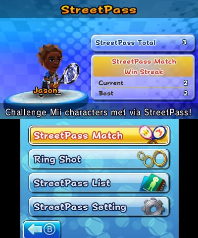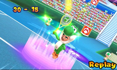 Additionally, Mario Tennis Open will also have unlockable characters, such as Luma, Baby Mario and Dry Bowser. These characters can be unlocked either by progressing through the game or using QR Codes. Finally, the game also has StreetPass feature by which you can play against AI characters based on people you encounter via StreetPass.