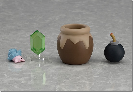 The standard The Legend of Zelda: A Link Between Worlds Link Figma includes the figure, two expressions, the Master Sword, a Hylian Shield, a stand, and a 2D-Link, in case he needs to flatten himself against any walls. The deluxe edition also includes a grappling hook, bomb, Tornado Rod, Rupee, pot, and Baby Maiamai. There’s a ¥1,000 price difference between the two, with the standard version costing ¥5,000 (~$42.50) and the deluxe set at ¥6,000 (~$51).