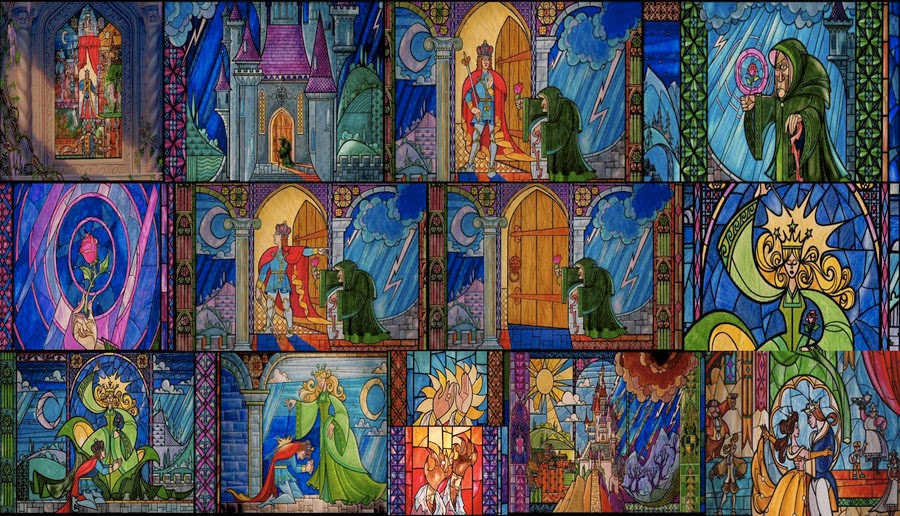 We had our idea in mind, but we had to do some research. A strong inspiration was Walt Disney’s The Beauty and the Beast intro, that shows a "fake" stained glass window and plays with lines to create nestled shapes.