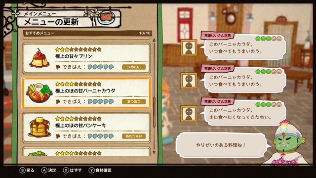 By continuing to make tasty dishes with fine ingredients, your café’s reputation will go up. More unique people will come, including some who seem to have troubles on their minds. If you serve them and leave them satisfied, they’ll tell you what’s up.