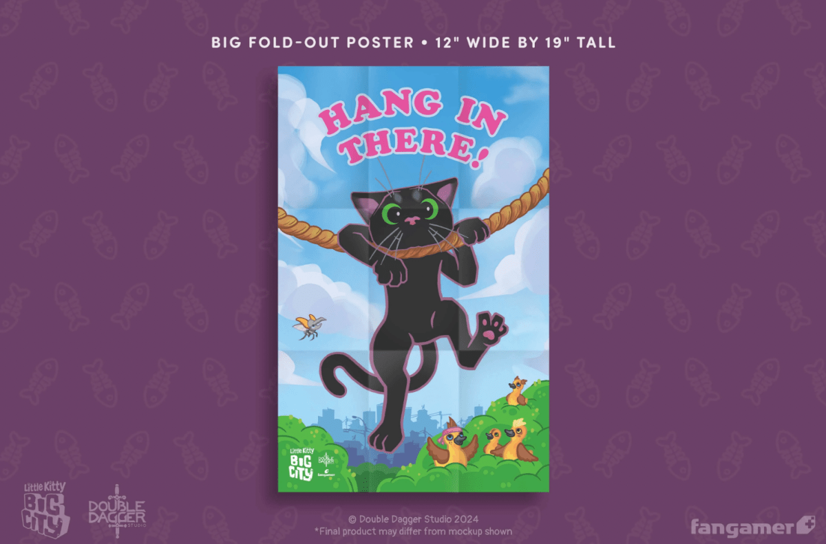 The big draw of the Little Kitty Big City Deluxe Edition physical copy is the frog cat hat. It is based on the one you can acquire by playing. You can also get a Hang in There poster with the kitty on it. There are cat sticky notes and stickers as well.