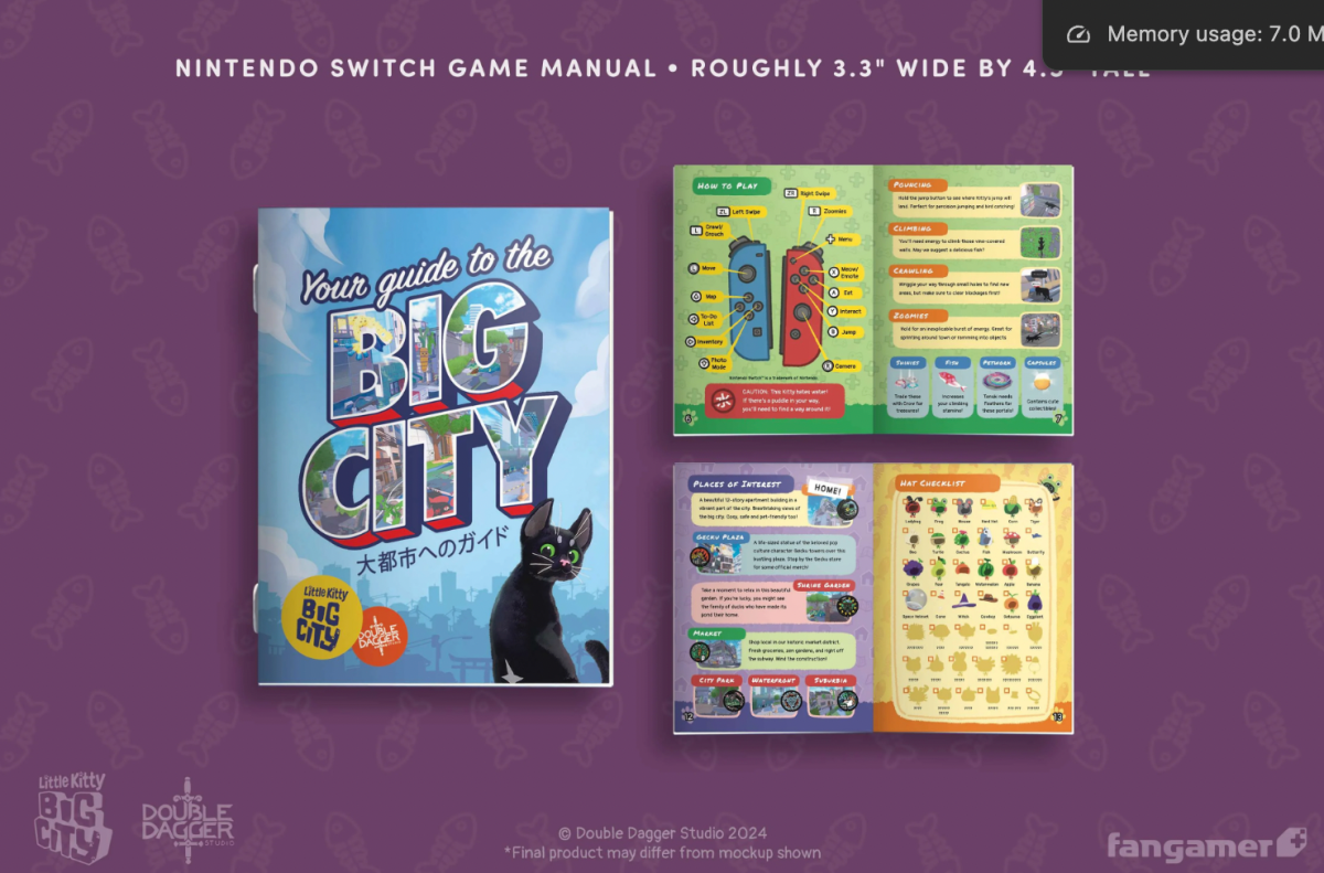 There will be Little Kitty Big City Switch physical copies, and the Deluxe Edition includes a frog cat hat like the one in the game. It is only sold at Fangamer for $59. The standard copy will be more widely available for $34.99.