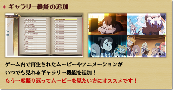 Firstly, a Gallery option will be added so that players can rewatch animated sequences whenever they want to.