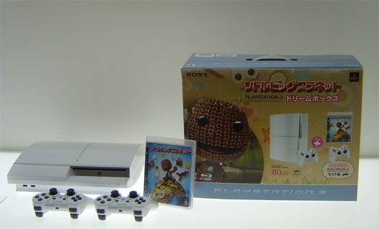 Sony Computer Entertainment Japan is showing LittleBigPlanet a lot of love with their LittleBigPlanet PlayStation 3 Dream Box. The photo shows a Ceramic White 80GB PlayStation 3, two Dualshock 3 controllers, and LittleBigPlanet for 44,980 yen ($449). In stores the bundle in three colors Ceramic White, Satin Silver, and Clear Black. Not a bad deal, but if you have a PlayStation 3 this is probably useless. The LittleBigPlanet Dualshock 3 Set is even better. You get the game and a Dualshock Controller for 7,980 yen ($78). Not only is that cheaper than buying LittleBigPlanet and a Dualshock 3 controller separately, 7,980 yen is almost the same price of Dynasty Warriors: Gundam 2 which Namco Bandai is selling for 7,800 yen ($78) in Japan. With the dollar constantly declining games are suddenly expensive in comparison.