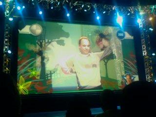11:30 – Banjo Kazooie coming to Xbox Live Arcade, a new Scene-It game with avatars, and You're in the Movies from Codemasters / Zoe-Mode. It's about making shorty campy B-movies. A demo has someone acting like a clown in a bungee run.