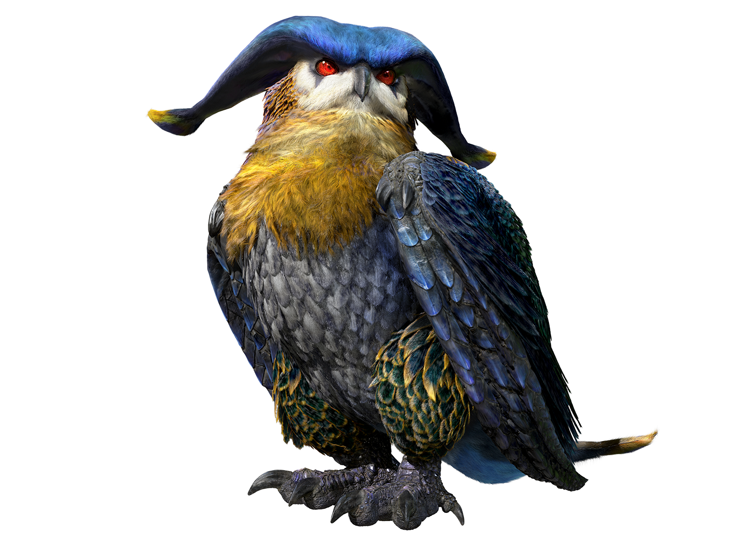 When you’re deep within the Jurassic Frontier, keep an eye out for this bird of prey. Malfestio isn’t one of the flagship monsters in MH Gen, but it’s a fearsome monster all the same. It has special attacks that can inflict Sleep and Confusion, leaving hunters vulnerable as it swoops in to attack. Hunters who aren’t careful will find themselves waking up back at base camp wondering if it was all a bad dream. For the localized name, we decided on something quite different from the Japanese. In Japan, this monster is called ホロロホルル [ho-ro-ro-ho-ru-ru] (say that ten times fast!), which is derived from the Japanese onomatopoeia for owl sounds, the word “chloroform,” and Koropokkuru—a race of small people in Ainu folklore. As much as we liked the meaning behind this, it was just too long to romanize for the international version (not to mention it’s a bit of a tongue-twister). We always try to avoid making names too long—it could spell disaster when translating material names and such. Plus, there’s always the possibility a subspecies could show up in future installments, so we like to think ahead and leave a little space to work with just in case we happen to need it later. With romanization out of the question, we came up with other ideas based on the monster’s characteristics. A few of our proposals included Sonotus, Strikkua, and Notrios, which were all derived from words like “sleep” and “sorcery” in different languages, as well as various scientific owl names. In the end, our top pick was a mix of the words maleficus (Latin for wicked), jester, and asio (a genus of owls). We felt “wicked” was a good word to describe the monster’s spellbinding capabilities, and visually, it sort of looks like an owl wearing the cap ‘n bells of a jester, so we thought this name fit the monster quite nicely.