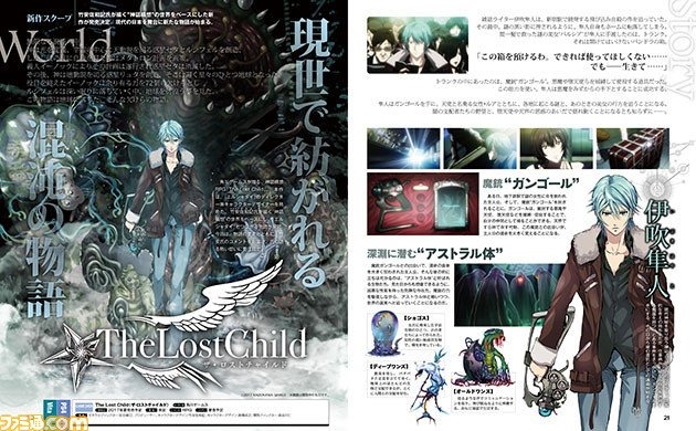 Kadokawa Games announced The Lost Child, an upcoming PS4 and PS Vita title that is based on creator Sawaki Takeyasu’s El Shaddai: Ascension of the Metatron mythos. Here are more details from this week’s Famitsu. [Thanks, Hachima.] Magazine writer Hayato Ibuki was going after an incident of successive suicides at the Shinjuku Station. At this time, as if he was pushed by a mysterious dark-haired woman, Hayato falls down onto the rails. After being saved by a hair from a mysterious beautiful woman who goes by the name “Barcia,” Hayato was given a Trunk. This is a Pandora’s Box that should never be opened. Inside this box was an item called Gangaur, used to capture and contain angels and demons. Using this newfound power, Hayato successfully captures demons and makes them his subordinates. Together with an angel who goes by the name Luqa, Hayato goes after various mysteries around different parts while searching for the whereabouts of the mysterious beauty from the train station incident. Brutal creatures known as the “Astral Bodies” will stand before Hayato. They come in various varieties such as Shoggoth, Deep Ones, and Old Ones. The adventure part of the game will have you go around various parts as the protagonist in search of coverage. Once you gather enough info, you’ll head into dungeons where the Astral Bodies await. The battle system is a turn-based system, and using angels and demons you’ll take on the Astral Bodies, and will even get to befriend them too. Here are the characters we know of so far:
