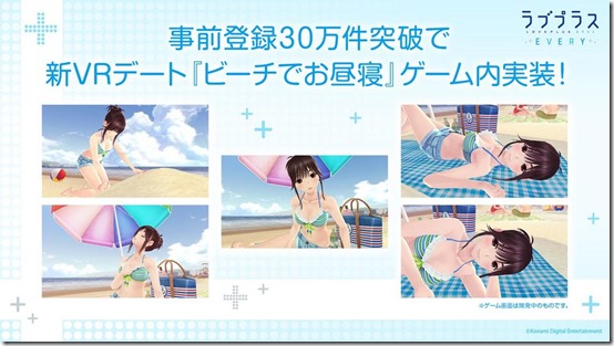 Additionally, it was revealed that over the game has crossed over 300,000 pre-registrations, and as a reward, a date event where you nap together at the beachside will be added to the game. LovePlus Every will launch on iOS and Android in November 2019.