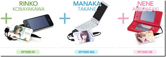 Due for release on February 10th, are LovePlus Mobile Chargers. But they don’t just charge regular phones…they’ll work with your Nintendo DS Lite, DSi, DSi XL, PSP and iPhone as well, via a variety of pins (full list of compatible devices at link) that are part of the package: