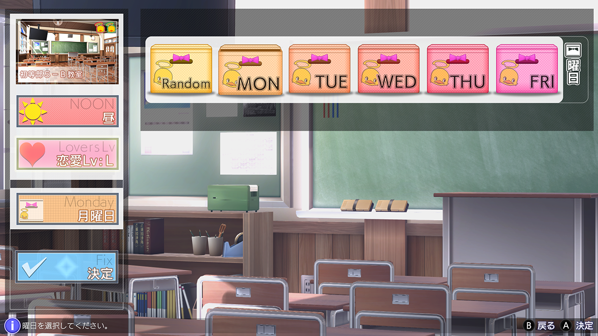 Basically a weekly undergarments schedule for the girls. They also wear “slightly sexier” underwear on the weekends, but this is exclusive to the Nintendo Switch version.