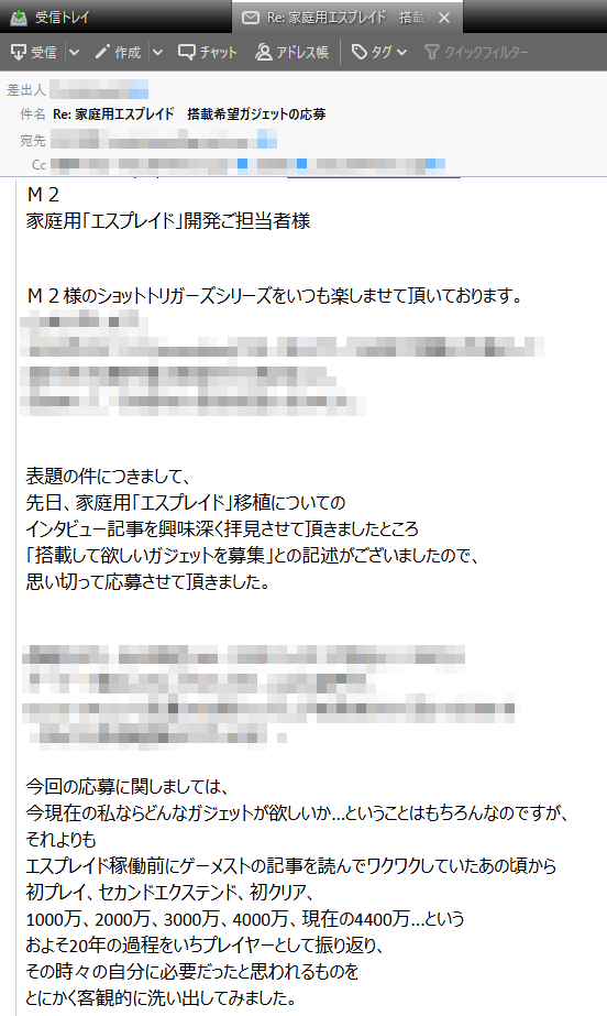 In an interview with DenFamiNicoGamer, M2 announced that the latest M2 Shot Triggers game, Cave shmup ESP Ra.De., is not only headed to PlayStation 4 but also Nintendo Switch as well, with a targeted late 2019 release. This makes the game the first Shot Triggers series title to be available on Switch. The game is set to be sold digitally, in a physical version with a first-print bonus, and a Limited Edition. Currently, M2 is collecting ideas on what to include as part of the first-print bonus via this Tweet here, and if your idea is used, your Twitter handle will be included in the Special Thanks section in the credits. If you take a look at the left side of the UI in the image above, you’ll see that a certain section is blurred out. That’s the ‘Gadget’ section, ie. extra counters and functions added as extra features. Back in January, M2 collected ideas on what to add to this section via Twitter much like they are currently doing, and in the interview they revealed some of the extra features.