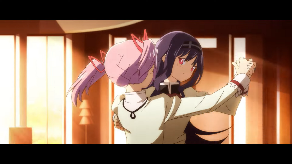 The trailer is quite short at around thirty seconds. It starts with Homura and Madoka dancing, before we get some shots of characters both new and old. There seems to be something wrong with the dancing Homura though, as her eyes are a different color than usual. There’s a quick shot of Sayaka with bandages all over her face, as well as someone cutting their arm with a knife, only for their blood to congeal into a dark blob. Though these scenes will surely make more sense in context, they’re rather confusing at the moment.
