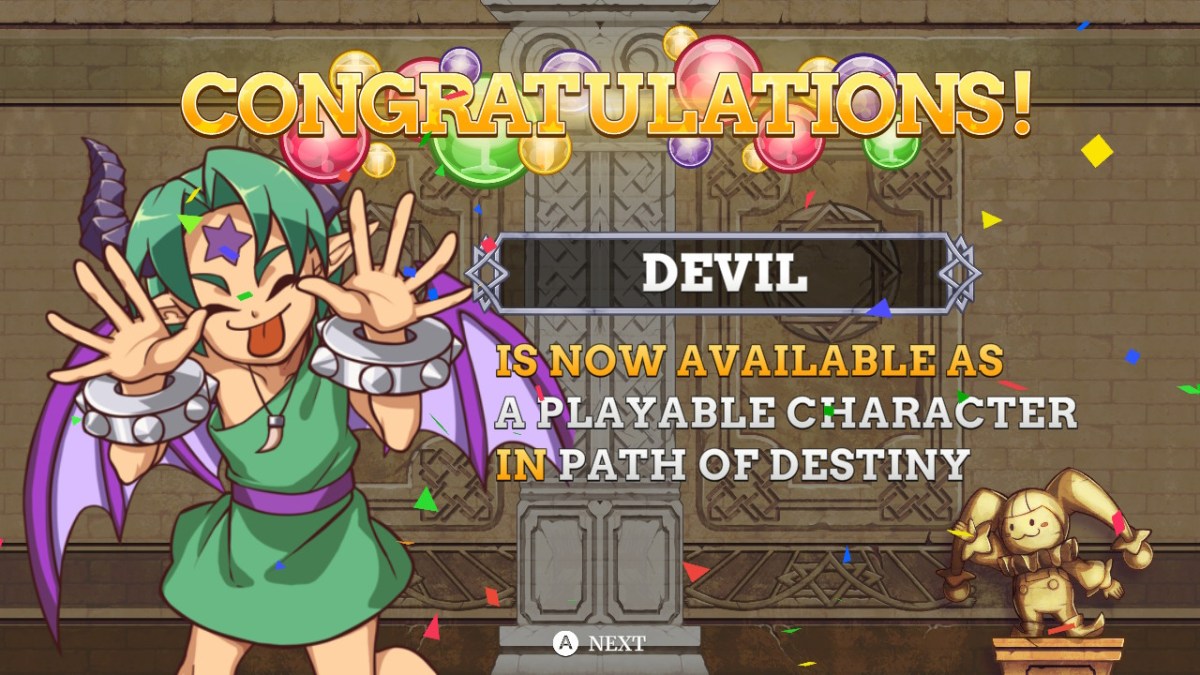 So, how do you get them? You’re forced into other modes! In particular, I’ve gotten Daughter Strength and Temperance from the Puzzle Mode. Survival mode on various difficulty modes unlocks additional ones. However, the downside is you might only unlock the character for a particular mode. It could be o mode you didn’t like. Worse, you might unlock them for one you haven’t unlocked yet. Especially since one is hidden behind the Story mode. So I earned Devil from Puzzle, but then could only use him in the Path of Destiny mode… that I hadn’t yet unlocked. See, the Story Mode balancing ifeels a bit off, which proves to be an issue with even more unlocking. This is partially because of an unbalanced Ai, as even from the very outset on Easy it involves a reliance on combos. Which means if you aren’t at your best at the very outset and don’t set up combos in the first few moves, you could end up losing both rounds and finding your run completely done. Yes, the Story mode saves, but it’s an immediate game over if you lose a match against another CPU character. Which means if you’re having trouble there, you don’t get to unlock Path of Destiny. At least all multiplayer options are unlocked the moment you open the game. You can immediately head into a local or online regular, Time Crush, or Quota Crush match, though characters are restricted. However, if you come to Magical Drop for competitive play, this could prove an issue. The online option only allows you to directly face one opponent. You can’t create a lobby or organize an impromptu tournament among friends. It’s great to have a wide array of modes, and Magical Drop VI benefits from it. However, this is also the sort of puzzle game people might prefer to play in certain ways. Someone might be more into the solo puzzle-solving and survival elements, which is fine. But a competitive player will find themselves drastically restricted, and it’s a shame. Magical Drop VI is available for the Nintendo Switch and PC.