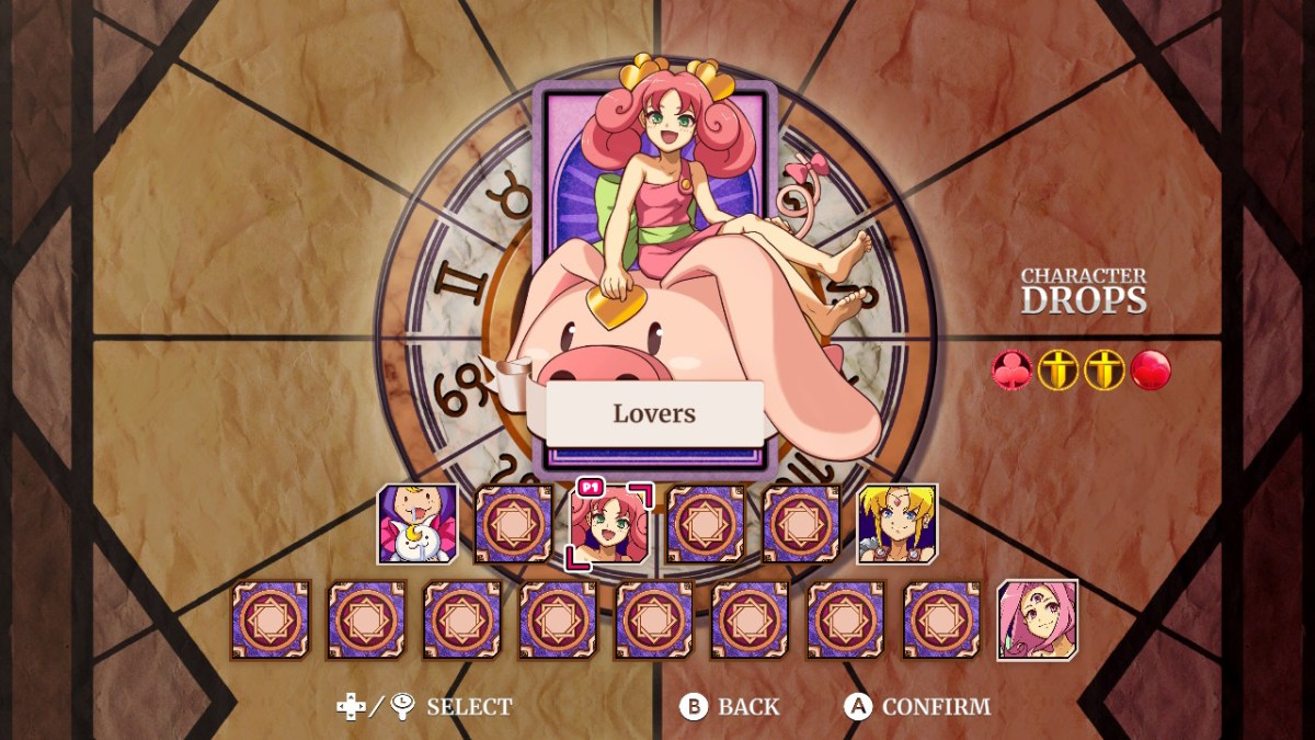 Magical Drop VI is, in many ways, a fairly admirable entry. It features six single-player modes, with solo competitive, puzzle, and survival options and a story mode that essentially combines elements of all three. You can play locally or online. However, it also features drastic unlocking elements To start, you only have four characters available out of 15 available to you in multiplayer at the outset in Multiplayer. (These are Fool, Justice, Lovers, and World.) If you want the others, you need to complete certain modes or hit various milestones. However, in Single Player you only have Lover initially in Match. Fool, Justice, Lovers, and World are open in Survival right away. Given how critical multiplayer is to the game, it’s so disappointing to not immediately have every character available to use.