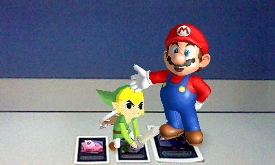 Inside Games has been experimenting with the AR Cards and discovered if you print a larger Mario AR card you get a larger Mario. Cel-shaded Link and Kirby, however, are the same size even if you print a larger card.