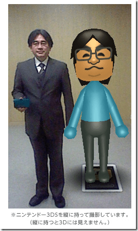 Club Nintendo in Japan will soon offer a large AR Card as a premium item. Purchase this and you can take a photo with a life-size Mii.