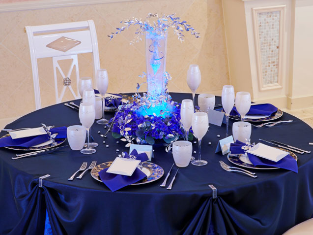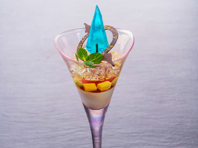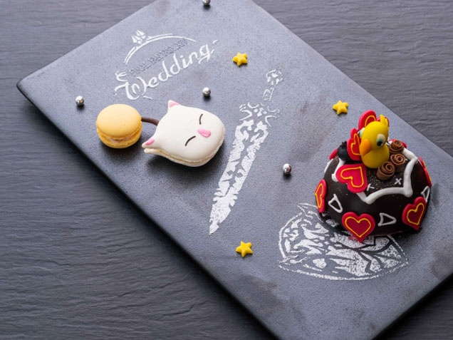 The wedding cuisine is also inspired by the world of Hydaelyn, with dishes modeled after in-game food. This will include an entremet to cleanse your palette, a parfait, and a seafood dish. For dessert, there are Moogle-shaped macarons. Also, couples can pop a bottle of vivid blue Chocobo Champagne.