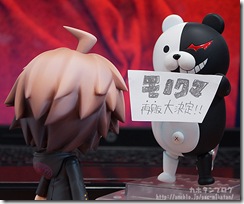 In honor of the Danganronpa anime airing now and Danganronpa 1 + 2 Reload coming this October, Good Smile Company will release a nendoroid of the hero Makoto Naegi. At the same time, they are re-releasing their Monobear Nendoroid. Makoto stands at about 100 mm and comes with swappable uncertain, shouting, and panicked expressions. He also comes with a witness stand and “Ronpa” (confutation) sign, so you can recreate the classroom trials from the series. Makoto costs 3,800 yen. You can pre-order him now and he will be delivered this December.