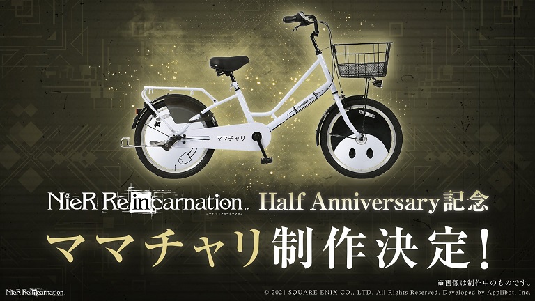 In February 2021, NieR: Reincarnation launched on mobile devices in Japan. In commemoration of the game’s half-anniversary, Square Enix will release a bicycle. More information on prices and release date will appear in the future. The bike will have a picture of Mama on the wheel, and is white and black to go with the general color scheme of NieR: Reincarnation. In Japan, bikes that have a basket in front are referred to as mama chari, which can be translated to “mommy bike.” This explains why an image of Mama will appear on the bike, as well as the joke behind this piece of half-anniversary merch. The words “mama chari” appear on the side of the bike, as well as the NieR: Reincarnation logo. Though NieR: Reincarnation went live in February, the rest of the world started to play it at the end of July. The Sunset Swimwear Premium Summon banner is currently available in the game. Players can attempt to pull swimsuit versions of Rion, Fio, and Akeha until September 1, 2021. There is also a new character, Griff, who appeared when Chapter 10 of the main story went live earlier this week. Previous merchandise featuring Mama includes a plush doll of her. NieR: Reincarnation is available worldwide on mobile devices.