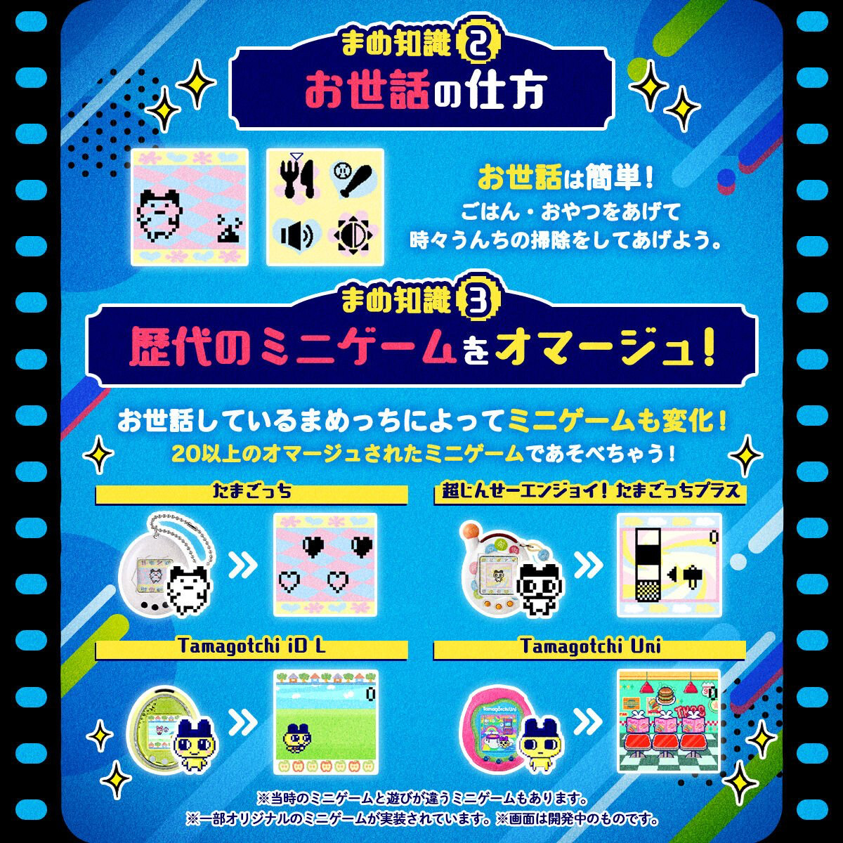 The gimmick behind this Tamagotchi is that you only raise the Mametchi character. This is the recurring character with big eyes, blush on their cheeks, black ears, and a yellow body. The announcement teased 20 versions of the characters who could appear based on the pet’s appearance since the devices debuted in 1996. As this is a color model, it will feature a changing background to match the ones from the devices as well, and versions of the character from color devices will be in color. There will also be UI and minigame changes that reflect the generation represented. Also, as with the themed Tamagotchi Nano models like the Hello Kitty ones, other virtual pets in the series will stop by to visit your Mametchi as guests.