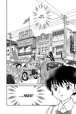 Most of our readers are probably familiar with Rumiko Takahashi’s longest running series, Inuyasha. It is the story of a young woman named Kagome who time travels through a well to feudal Japan and finds herself all tangled up with demons and curses. Takahashi’s latest manga, Mao, takes these familiar themes and reworks them to craft a new adventure. Nanoka became an orphan at a young age when a freak accident killed her parents, but left her miraculously unscathed. Years later, a rumor is going around at school that strange noises have been heard coming from that very spot. Nanoka tags along with some of her friends, curious to see if there’s any truth to it. When Nanoka steps through the nearby gate and into the shopping district, she finds herself transported back in time. But something dangerous lurks here. Nanoka’s immediately attacked by an evil yokai masquerading as a human.