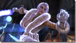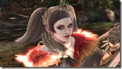 Mari Shimazaki, the character designer on Bayonetta and Okami, created alternate costumes for two of Soulcalibur V’s female fighters. The outfit she made for Ivy looks sort of like Jeanne’s costume, but with a more… ahem… exposed v-neck.