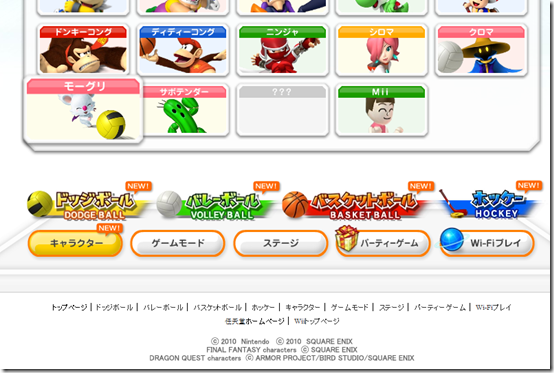 There’s one empty slot too… perfect for a Dragon Quest cameo, but which character will make the cut. Slime? Nah, I can’t imagine an armless slime excelling at any of the four sports in the game. Maybe the hero(ine) from Dragon Quest IX then?