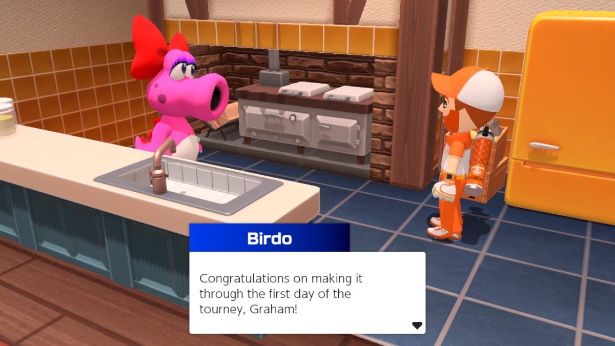 Thankfully, there’s still normal golf in this Mario Golf. It’s not in the “Golf Adventure” mode, a story-based campaign that showed early flashes of the Game Boy games’ brilliance in previews, but ended up being some gimmicky challenges tied together with a lot of text boxes. This mode spends too much time making you travel from element to element, and not enough making your progress and customization feel meaningful. (Though hey, it’s nice to see a significant supporting role for Birdo!) Nope, it’s just the normal golf. You go play the normal golf! Super Rush could be more fully featured if it focused on this part, but there’s still a decent time here. You can play locally or online with friends! The new courses’ Speed Golf-focused design does open up opportunities to improvise as you plan your approach. And as much as we wish there were more here, there’s some replay value in chasing your own top score for each course.