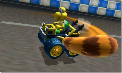 The Tanooki suit from the Mario games is back in full force this year. Not only will it be in Super Mario 3D Land, it’s an item in Mario Kart 7 as well. Judging by screenshots, it looks like you’ll be able to use a Tanooki tail power-up to hit other racers out of your way.
