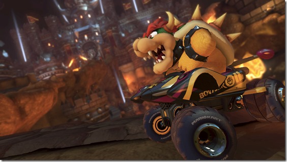 I’ve tracked down the music of Mario Kart 8 online to try and find examples, but it’s just not the same. The music of Mario Kart 8 is comparable to that of Donkey Kong Country: Tropical Freeze (which I wrote about back in February), in that transitions are so seamlessly worked into the environments that it’s truly impossible to capture the dynamic nature of a single tune in just one video. It’s a sensory experience that you can only get if you play the game. There are so many tracks I’ve neglected to mention in this write up, but if you plan on picking Mario Kart 8 up, you’ll get to experience it all for yourself. While you’re falling off the edge of Rainbow Road, remember to keep your ears perked up, because the soundtrack to Mario Kart 8 is something very, very special. Food for Thought: 1. Although the Celtic-sounding violin and folk-y acoustic guitar of Moo Moo Meadows is a delight, when it speeds up, I can’t unhear the sound of Turkey gobbling. I don’t know how else to describe it, but…wait and see for yourselves. 2. Expect to be busy for a while if you want all of the obtainable upgrades and stamps. Earning three gold stars (that’d be getting 1st place in all four races of a Grand Prix) may have earned me the hidden characters and Gold Kart, but I’m still missing about 50 stamps and the Gold Tires/Glider. 3. You cannot play against AI online with your friends. You can, however, play split screen online, or set up tournaments to invite your friends to.