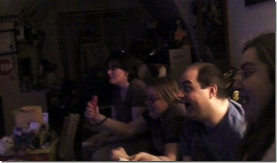 Some of my best friends and I have a ritual. You know, a little thing to keep us together and enjoy the little things. Every Sunday is “game night.” Sometimes it’s board games. More often than not, we bring out the video games. There are even times when we have a little field trip and go to a flea market, stop by comic book or game stores or even just fly kites. The important thing is, every week we know we’re going to get together and a good time will be had by all. From here on in, I’ll be changing the names to provide some anonymity for the people involved in this week’s adventures. Exact quotes are provided, which resulted in some exasperated sighs from certain individuals as I would stop play to get everything down. The cast of characters, as shown above from left to right, are Not-Caitlin, Not-Jessi, Not-Pat and myself. This past Sunday was fairly typical for us. We headed down to People Play Games in Lakeview, stopping by Chicago Comics and The Exchange since we were in the neighborhood. Video games were acquired by all, as well as some comic books and Tokidoki x Marvel Captain America and Red Skull charms. Not-Jessi convinced Not-Caitlin to purchase a used copy of Tecmo’s Deception. Momentary fretting occurred on the drive back when Not-Patrick’s car started overheating. Panera food was enjoyed. Then, we arrived back at Not-Jessi’s home. It was Mario Party 9 time.