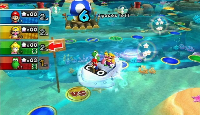 We’re usually a pretty happy and affectionate bunch. While we certainly aren’t above openly mocking each other, it’s all in good fun and there are never hurt feelings. So while our Mario Party and Mario Kart match-ups can result in some sniping and general back-stabbery, we’re never openly mean. Which fits well with this iteration since Mario Party 9 has all four players sharing the same car as they go around the board. We picked our characters, with Not-Jessi as Birdo, Not-Caitlin as Wario, Not-Pat as Toad and myself as Daisy, and headed off to Blooper Beach. “Nobody likes Mario. He’s an overrated show-off.” Not-Caitlin decided. That’s when we realized we’d all be in the same car. “We all gotta move together? What’s that crap?” Not-Jessi exclaimed. Not-Caitlin chimed in with, “That captain’s a bunch of bull!” As you can see, we are clearly set in our ways at the ages of 27-29. Meanwhile, poor Not-Pat as the newcomer to the series seemed flummoxed. “I keep thinking I need to do something when I see Yellow Toad, because I don’t realize he’s not me.” He pondered. Not-Jessi then informed him that she’d tell him when he needed to do something and just push the button. Now, given all that, you had to expect that the lack of Stars and Coins to focus on Mini-Stars came as quite a shock to us all as well. “No coins? Madness!” Not-Caitlin exclaimed. “But what if I want to buy something?” Not-Jessi asked me. I explained to her that there is nothing to buy in this version – that dice blocks come from certain squares and there are no power ups. The idea didn’t seem to click. “But I want to buy something!” Not-Jessi protested. “You sound like an old grandma!” Not-Caitlin said bluntly, and began playing. Despite her protesting, Not-Jessi started accepting her new surroundings rather quickly. Things started out bright for her as she took an early lead with 8 mini-stars, 5 acquired by catching a dolphin. It wouldn’t last. As we each finished our first turn, Not-Caitlin was perturbed by a new realization. We didn’t play a mini-game yet. When I told her they randomly come up in present boxes or on the occasional Bowser Jr., VS circle or Boss Battle, she was quite indignant. “Way to ruin it for everybody Nintendo!” She proclaimed.