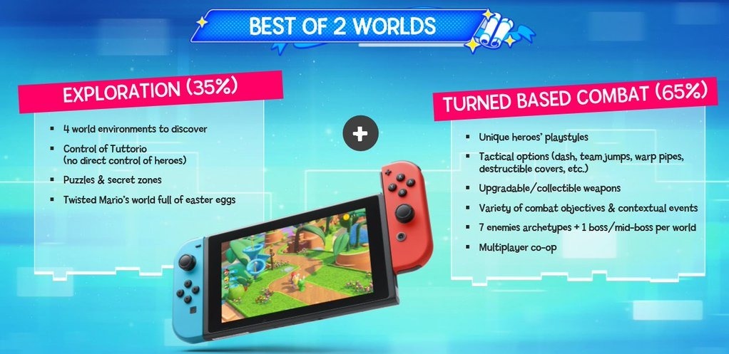 Information has been circulating regarding a Mario and Rabbids crossover game for quite some and it has now been confirmed for the Nintendo Switch. Nintendo and Ubisoft have paired up to create Mario + Rabbids: Kingdom Battle, which is described as an RPG featuring exploration and a turn-based combat system. [Thanks, NintendoWorldReport.] The game will feature four worlds that are “twisted” versions of Mario worlds, and its combat will be mainly weapon-based, with Mario and his friends wielding guns that appear to shoot lasers. Eight characters will be available to choose from, including Mario, Princess Peach, Luigi, and Yoshi, as well as four Rabbids dressed up as each of them. In addition, the combat is noted as being more on the tactical side. Co-op play for up to two players will also be available. Mario + Rabbids: Kingdom Battle was originally supposed to be revealed at this year’s E3, but information on the game got leaked ahead of schedule. Here’s a look at some images from Mario + Rabbids: Kingdom Battle.