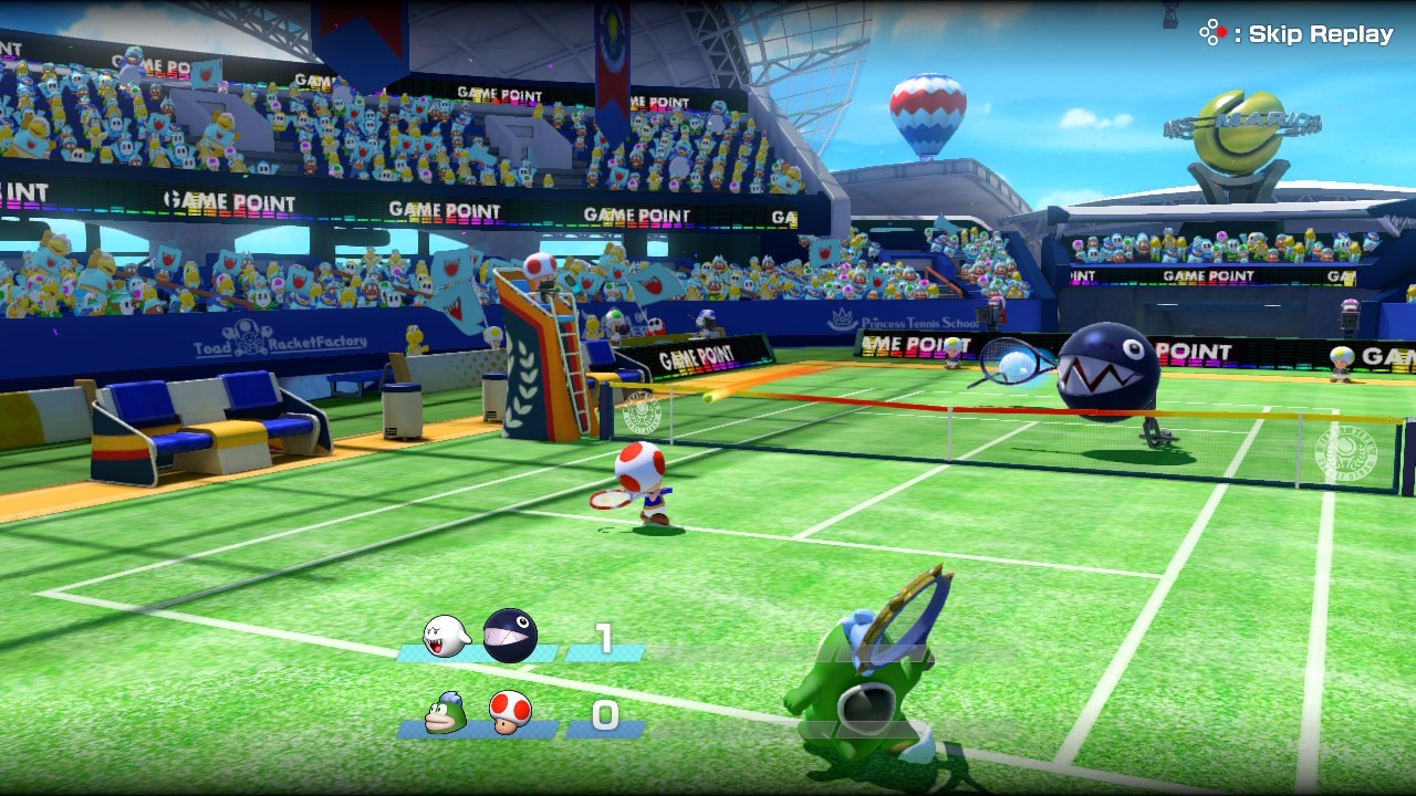 Mario Tennis Aces is a game that makes sure its characters commit to the bit. Each person or monster’s behavior is in line with what we would expect from them, based on previous games. This comes through in dialogue in Adventure Mode, actions during story scenes there and on the actual tennis court. It is fun to watch, and even occasionally funny too.