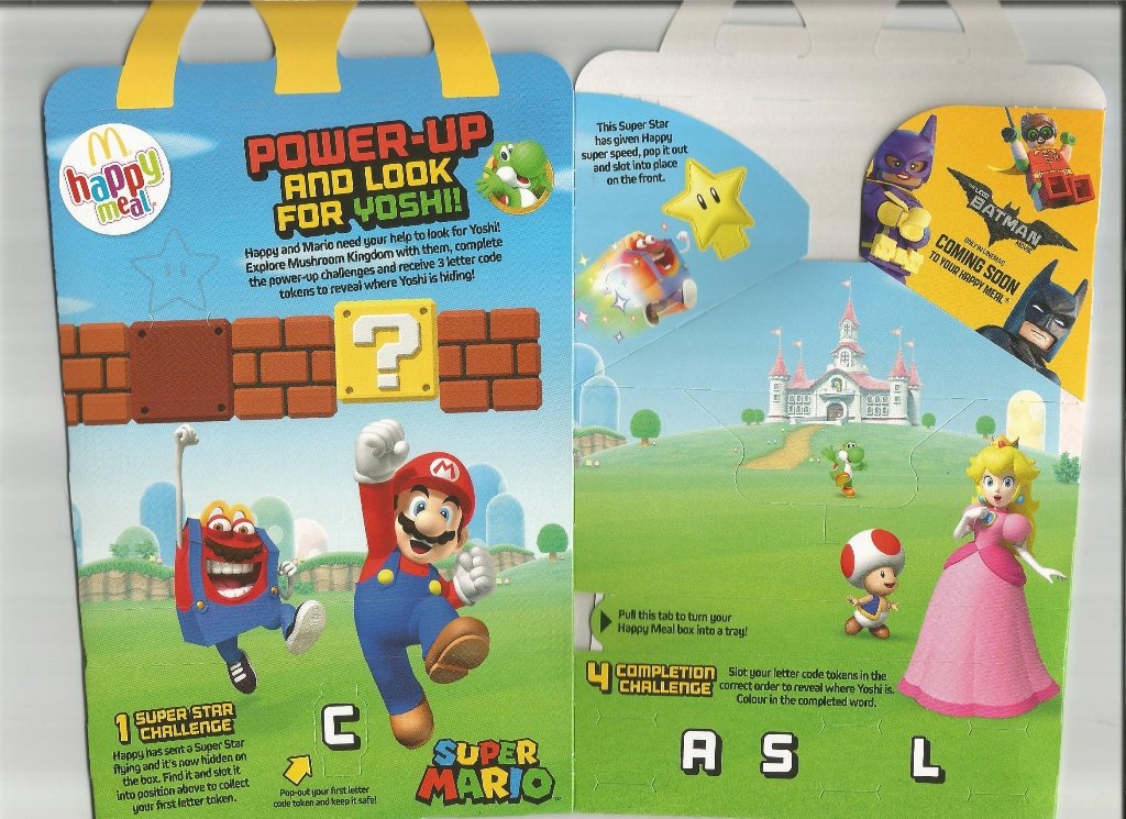 A batch of Mario-themed toys are headed to McDonald’s Happy Meals in the UK. [Thanks, NintendoLife.] The toys have already been released in Japan, and will be showing up in Happy Meals in the UK starting January 11th. Nintendo Life has shared the commercial for the toys, as well as images and a look at the coloring sheet games and Happy Meal box below.