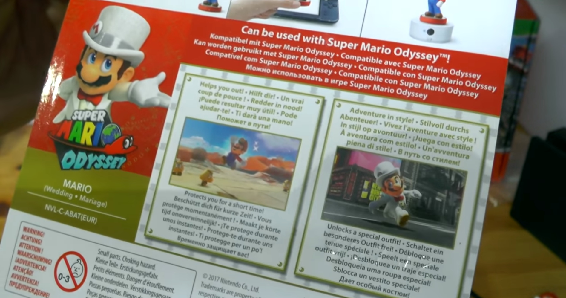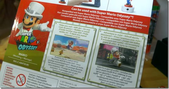 Thanks to a recent unboxing video, the effects for the Wedding Mario and Wedding Peach amiibo in Super Mario Odyssey have been revealed. [Thanks, FamilyGamerTV.] The Wedding Peach amiibo can help out players in a pinch by refilling Mario’s health gauge, and unlocks a wedding dress outfit for Mario.