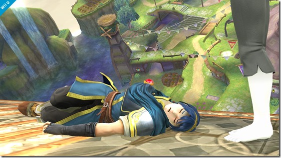 Either Marth is taking a nap or the Wii Fit Trainer knocked him out cold in the Super Smash Bros. screenshot above. She doesn’t seem like the sort to brutalize people, though, so I’m going to assume it’s the former. The rest of the latest screenshots from the game provide another look at the Super Mario Galaxy stage, as well as a look at the Windy Hill stage, which is based on Sonic Lost World.