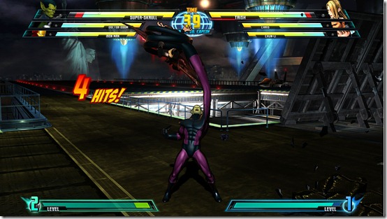 You can also teleport to get close and close with one of his two super moves. Super-Skrull, covered in flames from the Human Torch’s powers, can dive into an opponent Psylocke style. His other super move makes a growing fiery explosion around with Super-Skrull at the center of the supernova. It’s similar, but has more range than Storm’s thunderbolt super.