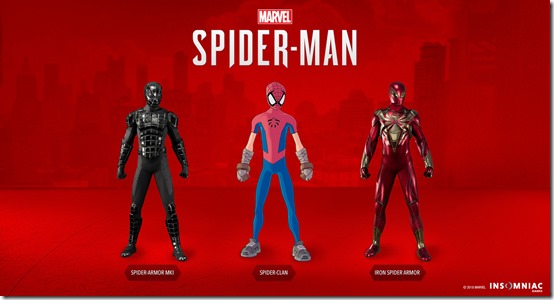The three Marvel’s Spider-Man Turf Wars suits have been revealed too. One is Iron Spider, which is an Iron Man-style suit that first appeared in The Amazing Spider-Man. Another is Web of Spider-Man’s Spider-Armor MKI. Finally, there is Spider-Clan, which is from Marvel Mangaverse: Spider-Man.