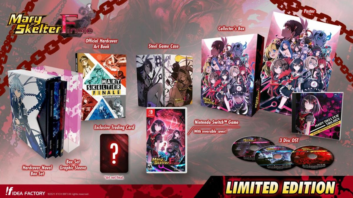 Idea Factory International also offered details about the Mary Skelter Finale Limited Edition. The $104.99 package includes the game and a number of extras. People get a Steelbook case, a soundtrack including songs from all three games, hardcover copies of all three of the novels based on the series, and a trading card. Its pre-orders will open on September 1, 2021. (The standard edition is $49.99 and also includes a trading card.)